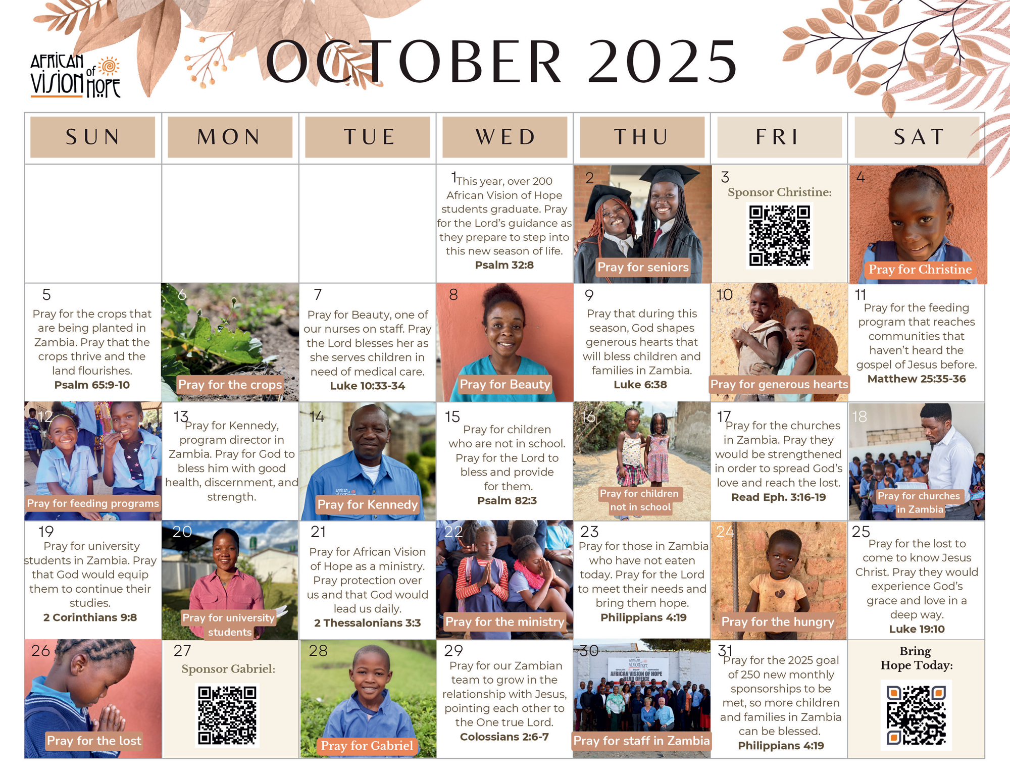 Become a monthly prayer warrior for African Vision of Hope and make your biggest impact.